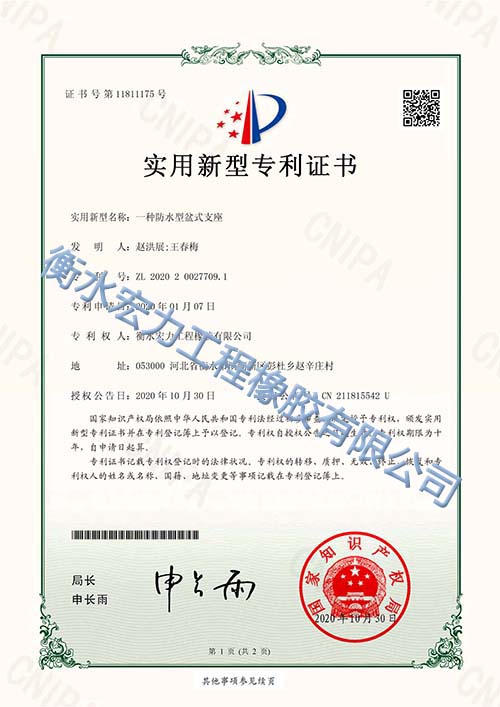 我公司主要經(jīng)營范圍包括:生產(chǎn)、銷售、安裝、維護(hù)板式橡膠支座、盆式支座、球型支座、隔震支座、防水板、橋梁伸縮裝置、橡膠護(hù)舷、土工格柵、土工布、透水管、止水帶、波紋管、預(yù)埋件(預(yù)埋鋼板、配套上、下鋼板等附件、配件)。